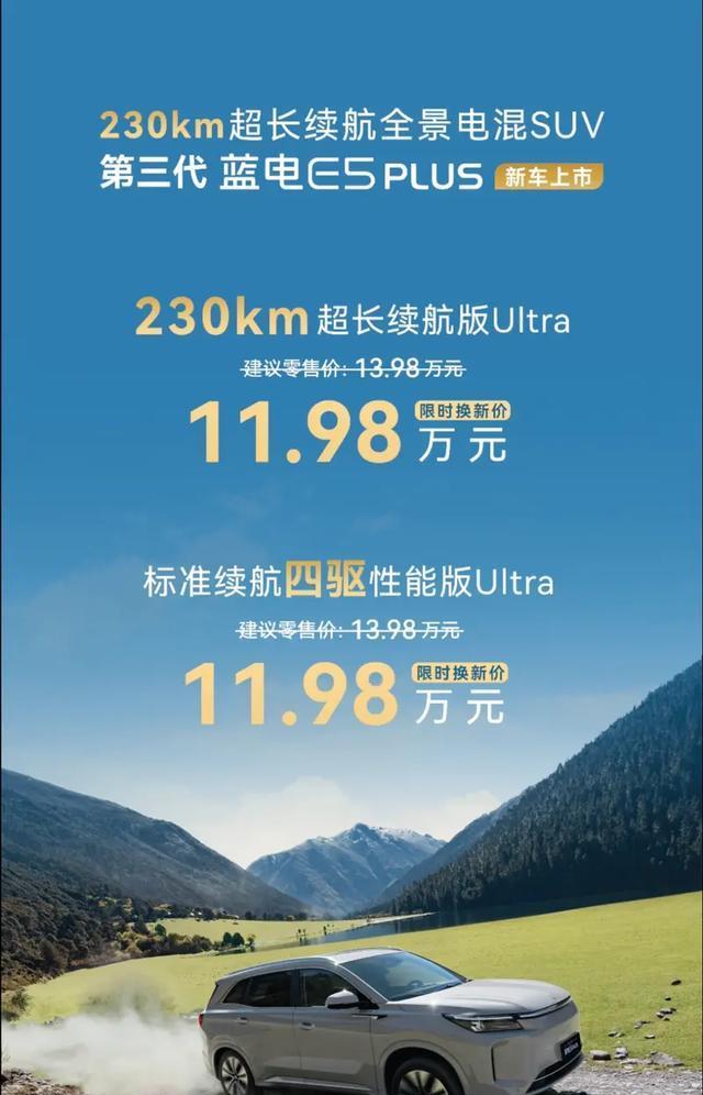 限时焕新价11.98万翻翻策略,第三代蓝电E5 PLUS上市:自适应悬架、四驱系统齐上车