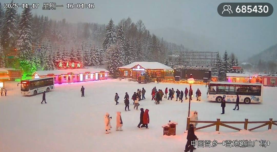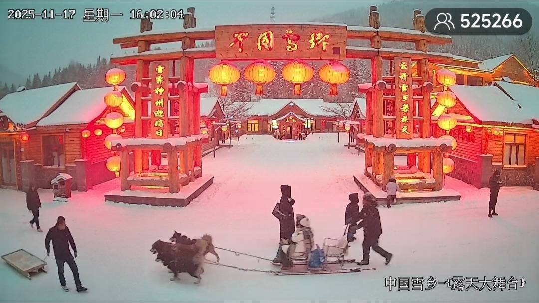 雪乡景区雪地蹦迪广场实况。图/直播截图